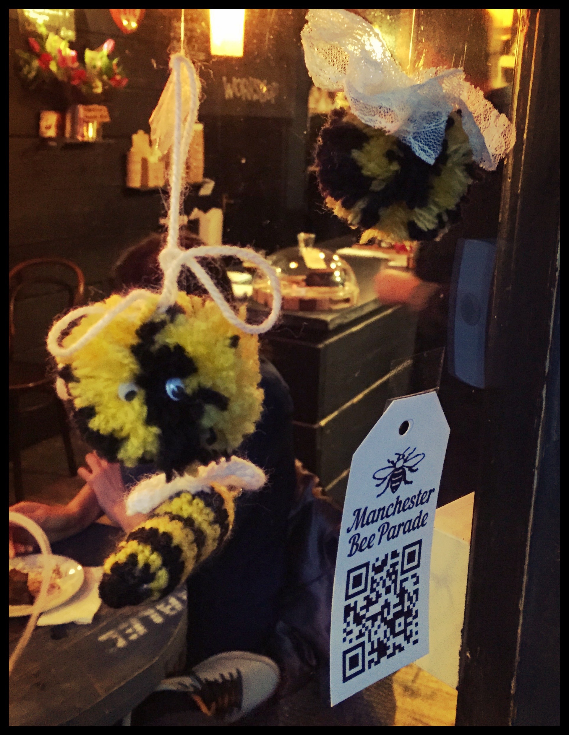The pom pom bees buzzing round the door when we slowed down for a delicious hot chocolate, drew my attention to the existence of the Manchester Bee Parade.