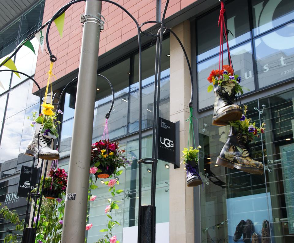 We meandered through Dig the City, picked up some ideas for the garden, and marvelled at the unusual use of space and texture. My gardening skills amount to little more than pottering, pulling up the weeds, and experimenting with planting to see which plants survive with minimal input, and which ones don’t, but some ideas, such as enamel painted baked bean can plant pots, I may just try at home; whilst others would not suit the garden of a traditional 3 bed semi. The gardens provide a temporary oasis in the shopping streets, and if so inclined, many offer a beautiful spot to enjoy a glass of prosecco in the sunshine, a delight Mark and I took full advantage of at last year’s event.