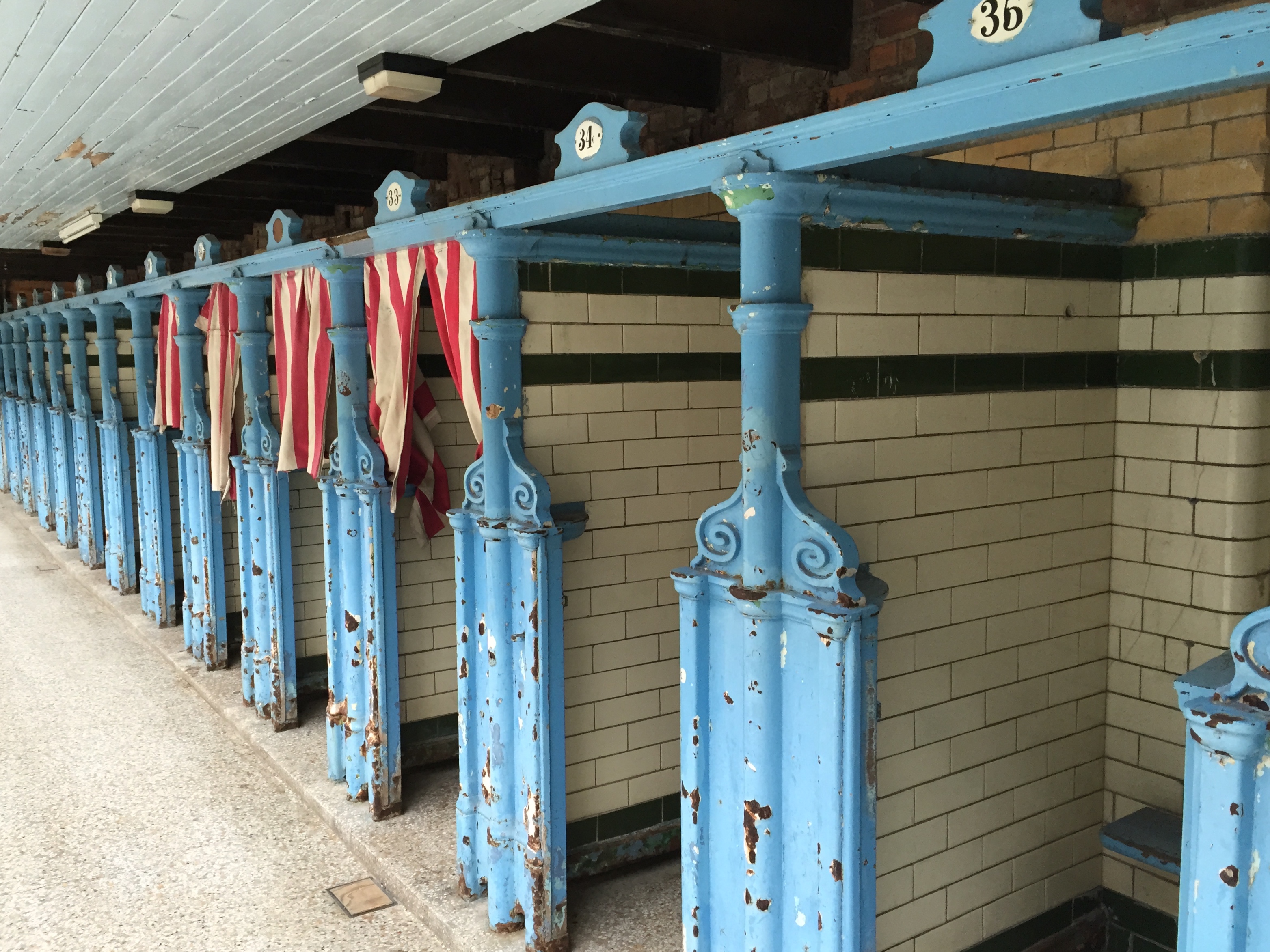I love the fact that the changing rooms beside the pools are still in tact, many with red and white striped curtains.