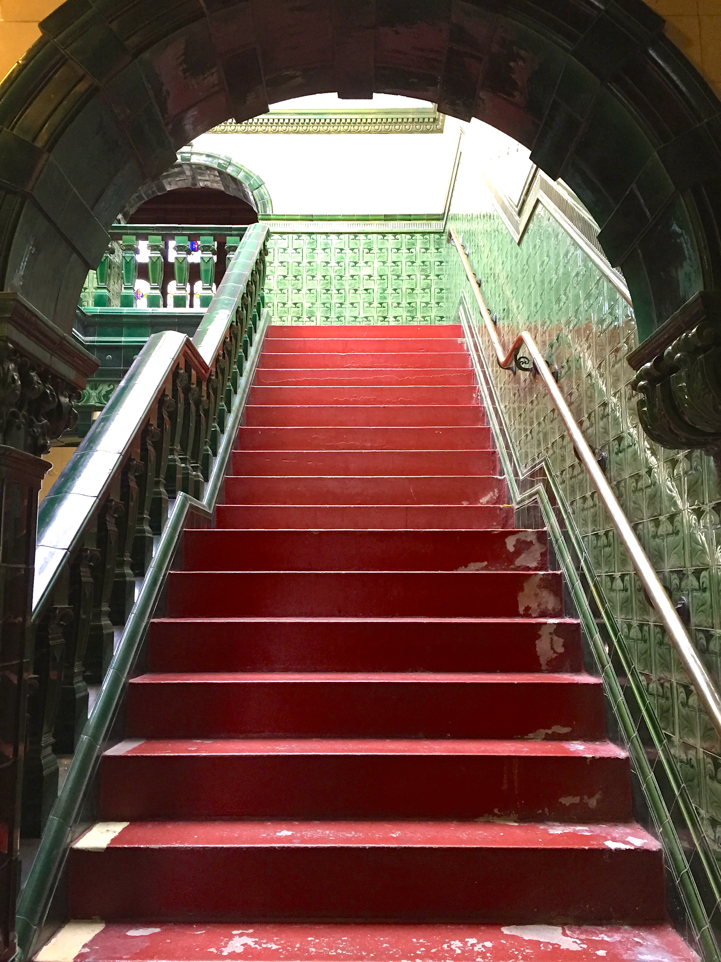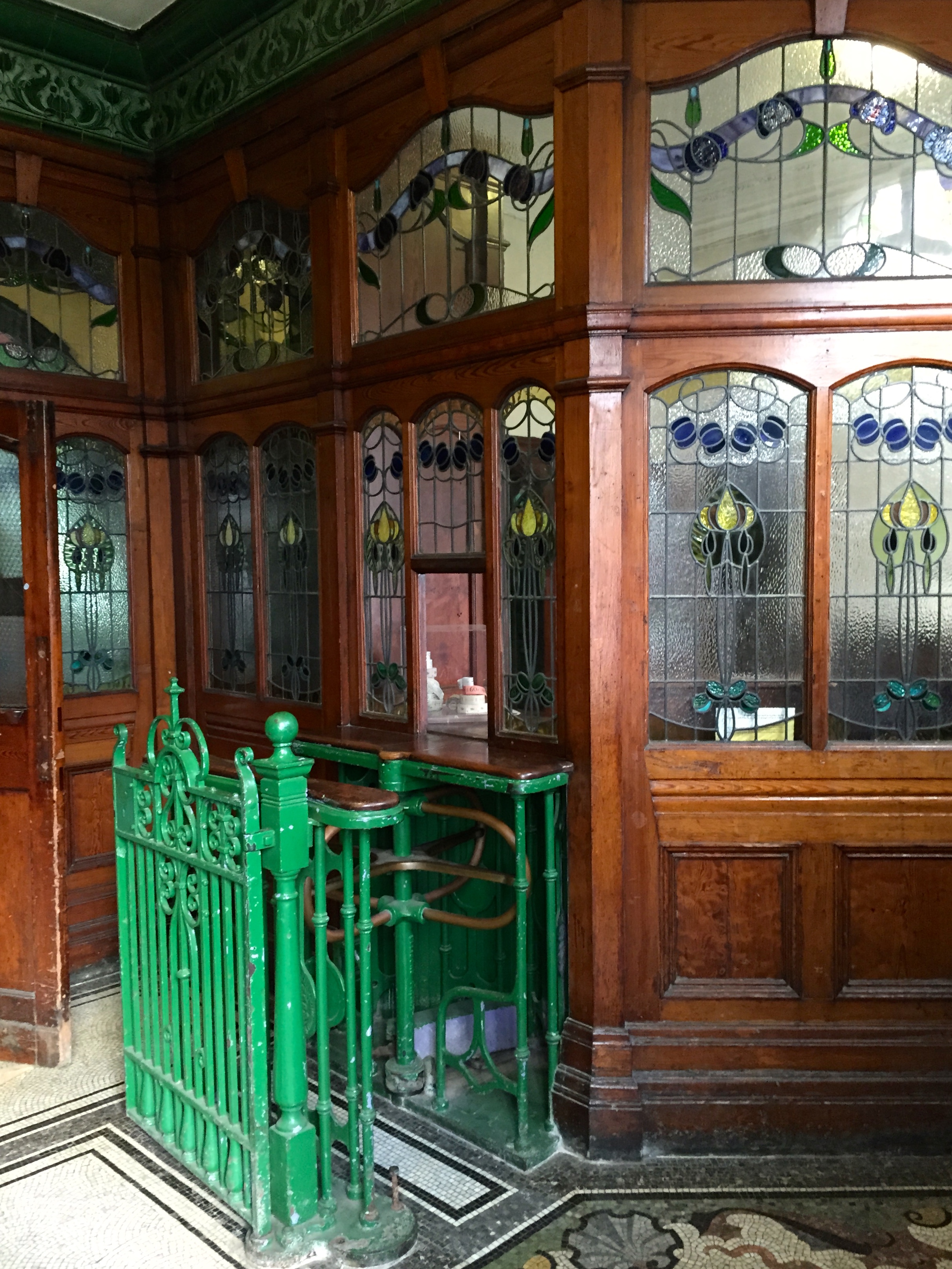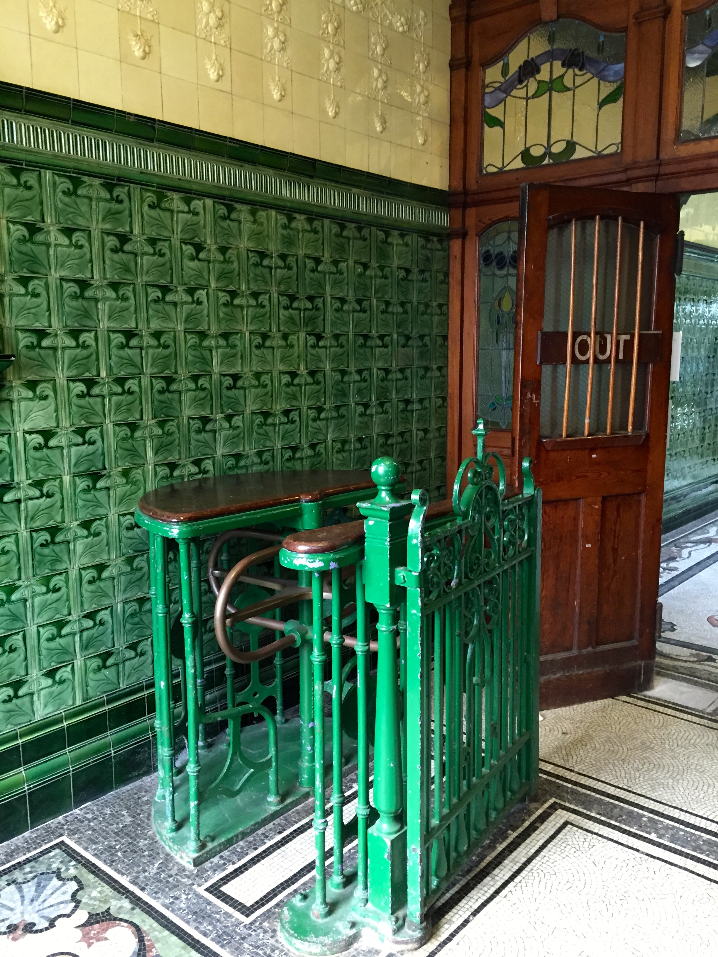 I haven’t managed to find out whether there is any significance of the green tiles, but similar ones appear in many of Manchester’s historical buildings including the Onward Buildings, the outside of Pevril of the Peak Pub, and in the entrance to the Council Offices that now contain Levenshulme Antiques Village. Maybe it was the fashion of the time, or maybe it was just what was most easily accessible.